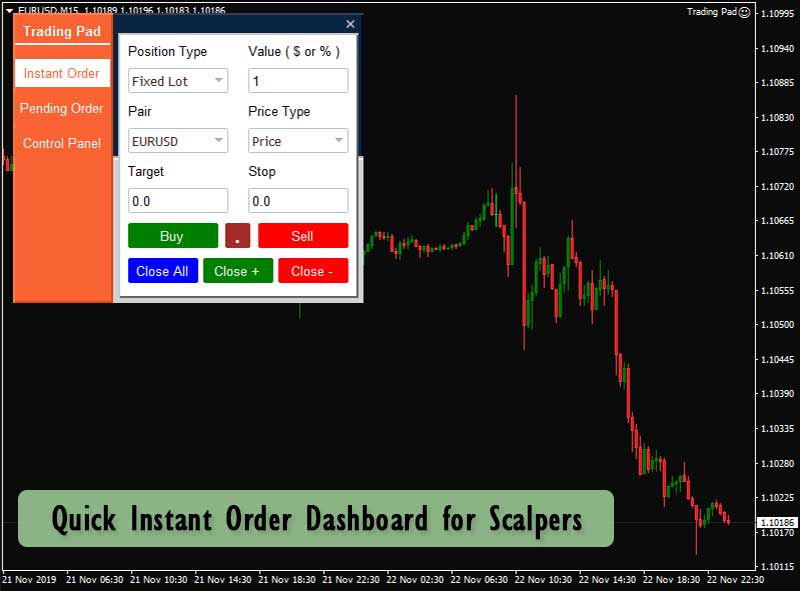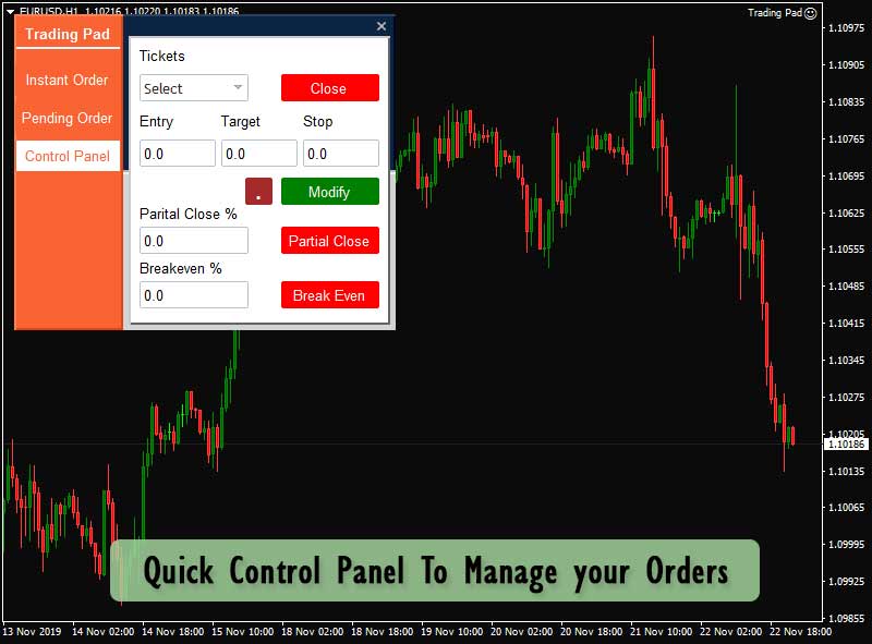 Quick Trading Pad helps you place trades manually with more accurate and 10x faster than normal manual MT4 Trading